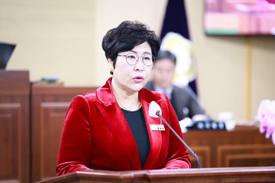 정혜선 의원은 “청양군청은 관내 최대 조직이며 공직자는 군정 발전의 핵심 자원”이라며 “공직자들이 안정적인 생활 기반 위에서 행정에 집중할 때 그 성과는 군민과 지역 발전으로 돌아올 것”이라고 말했다. 끝으로 “공직자만을 위한 특혜가 아닌 군민과의 형평성을 고려한 균형 잡힌 정책 검토가 필요하다”며 집행부의 적극적인 검토를 당부했다.